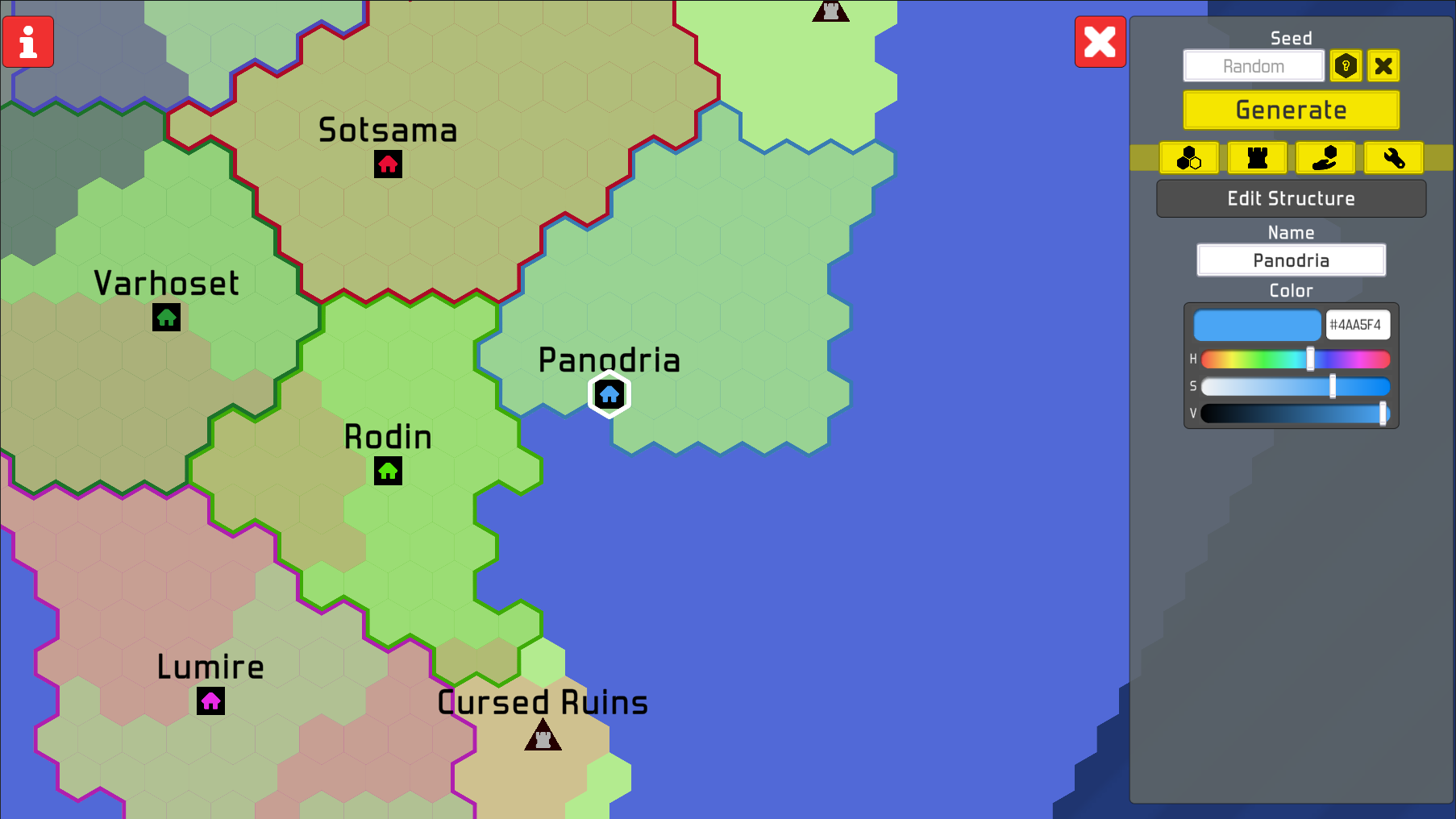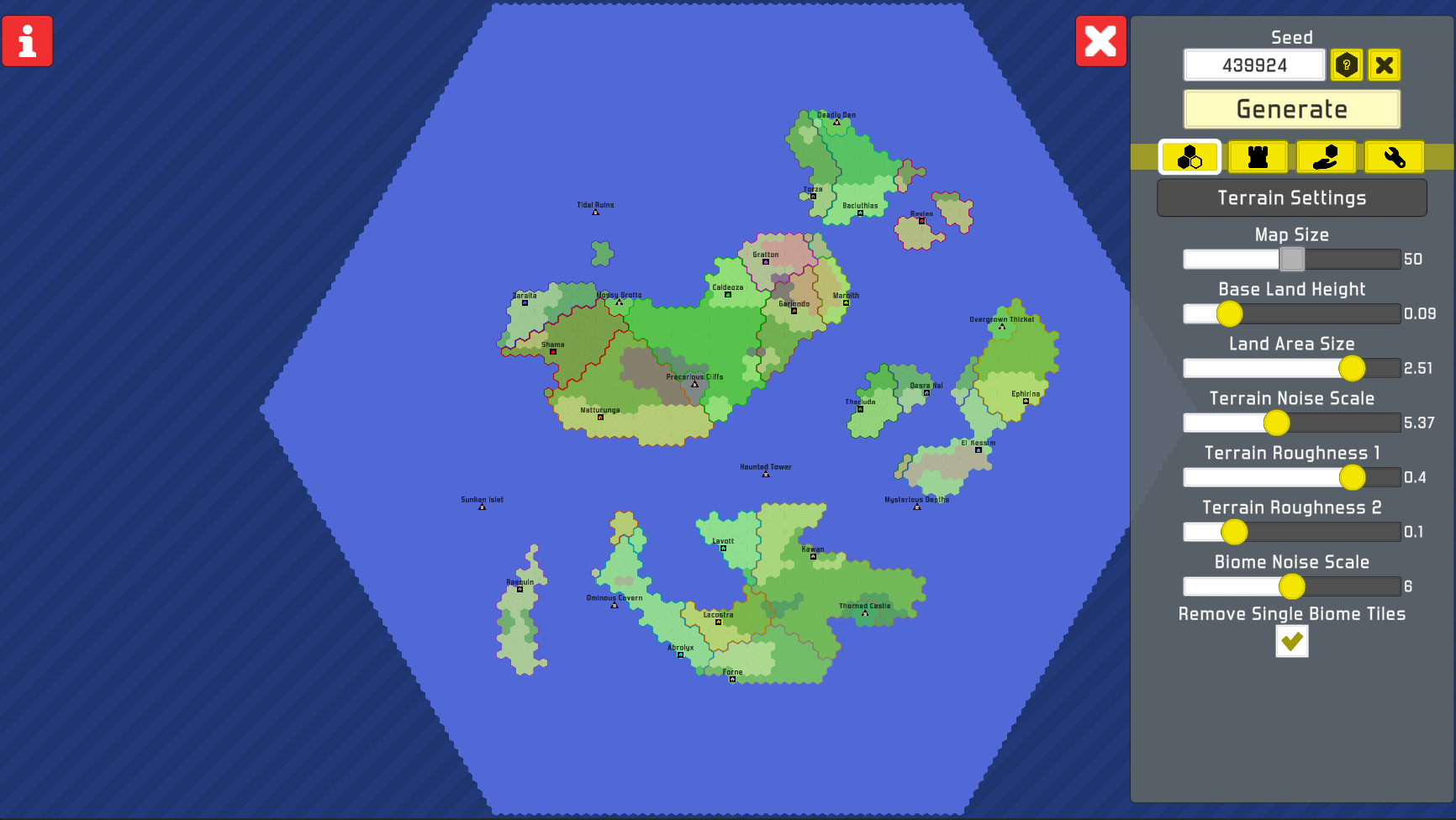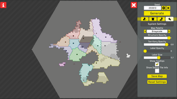 A little application that procedurally generates RTS-style maps. Comes with helpful settings for customizing terrain shape, city placement, color palettes, and more, plus the ability to download images of your finished maps. Great for quickly throwing together a setting for your tabletop campaign!